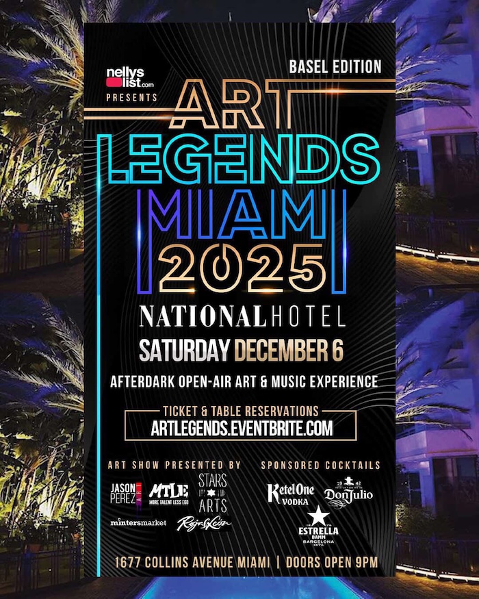 Art Basel Week is upon us, and with it comes numerous events, art installations, and beauty in various formats all across Miami. As well as the much anticipated Nellys List Art Basel party, Art Legends Miami 2025 at the National Hotel celebrating an after dark open air art & music experience.