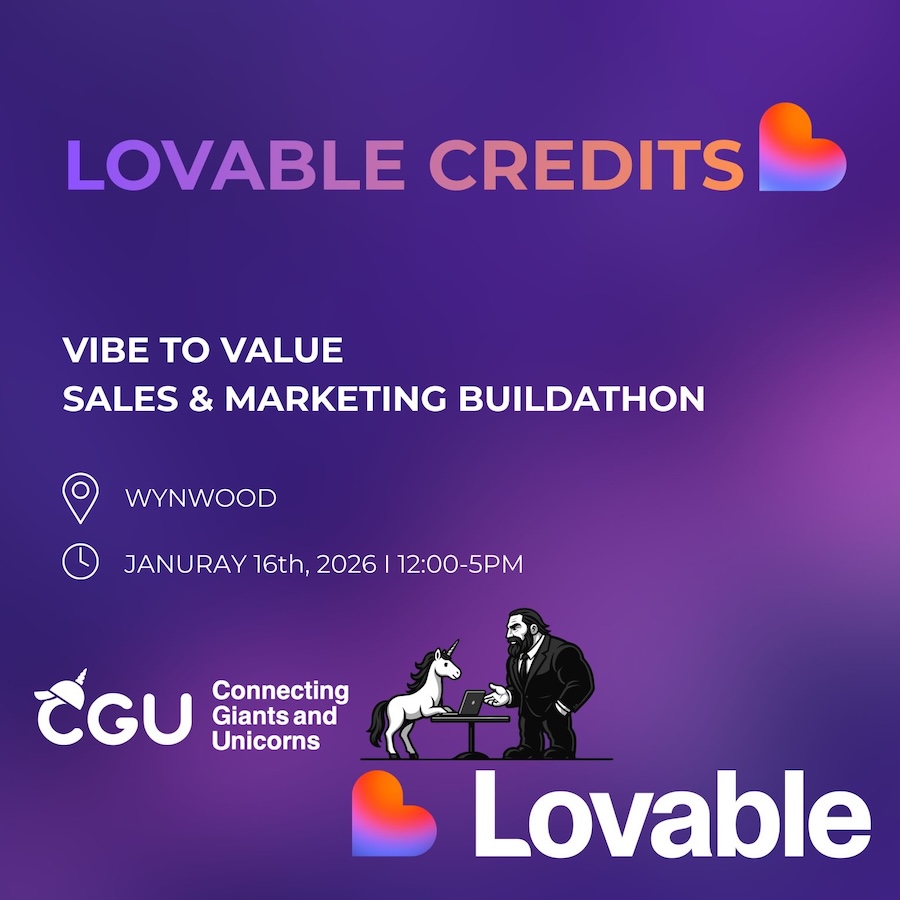 Lovable and CGU are teaming up in Wynwood to bring a fresh new flow to your 2026 events kicking off in January. There will be a panel discussion, networking, Lovable credits shared, and a hands on sales and marketing buildathon. The concept here is from idea to working product with Lovable. Giving guests the opportunity to actually build and see how AI tools are transforming workflows and creativity!